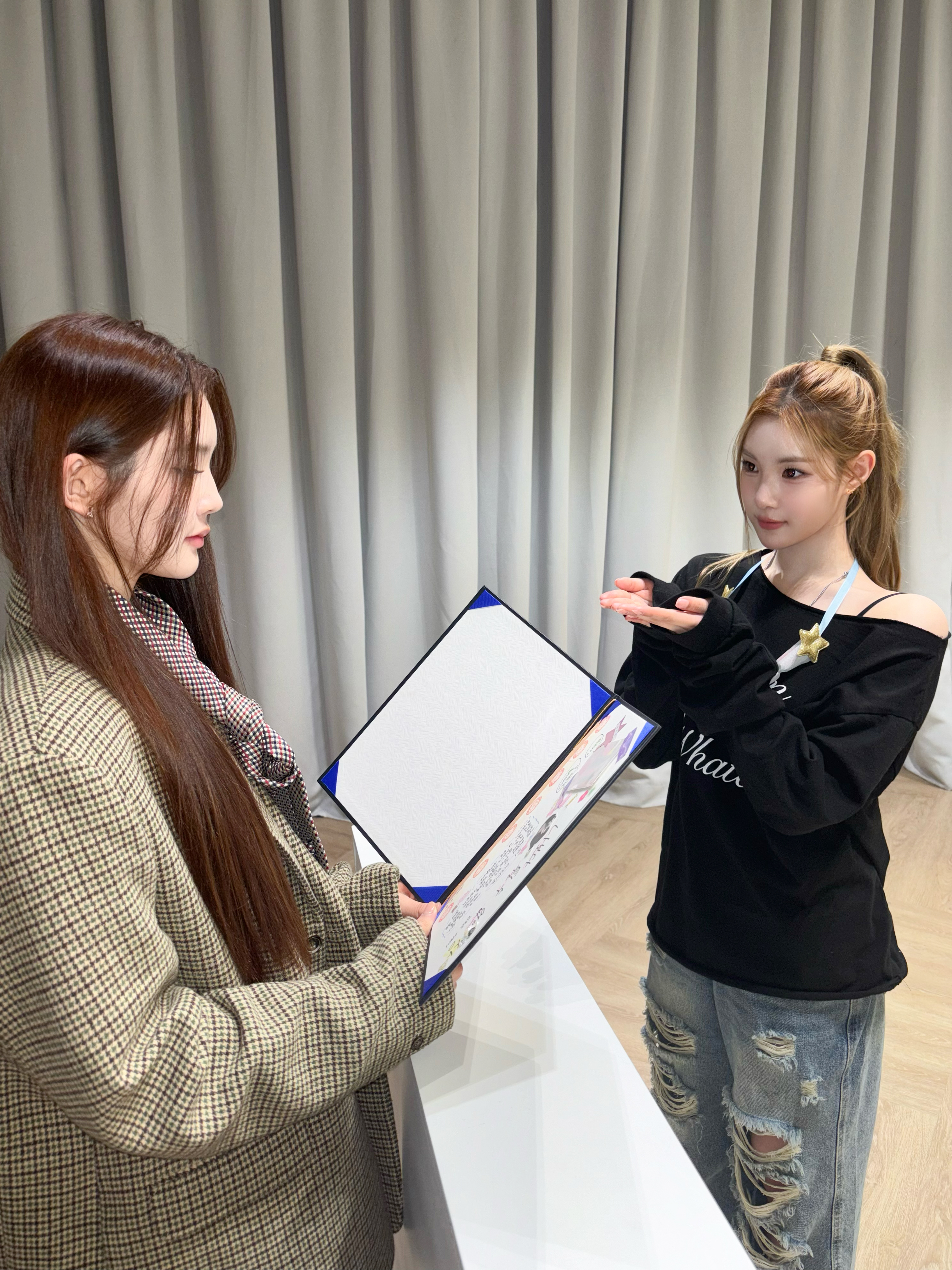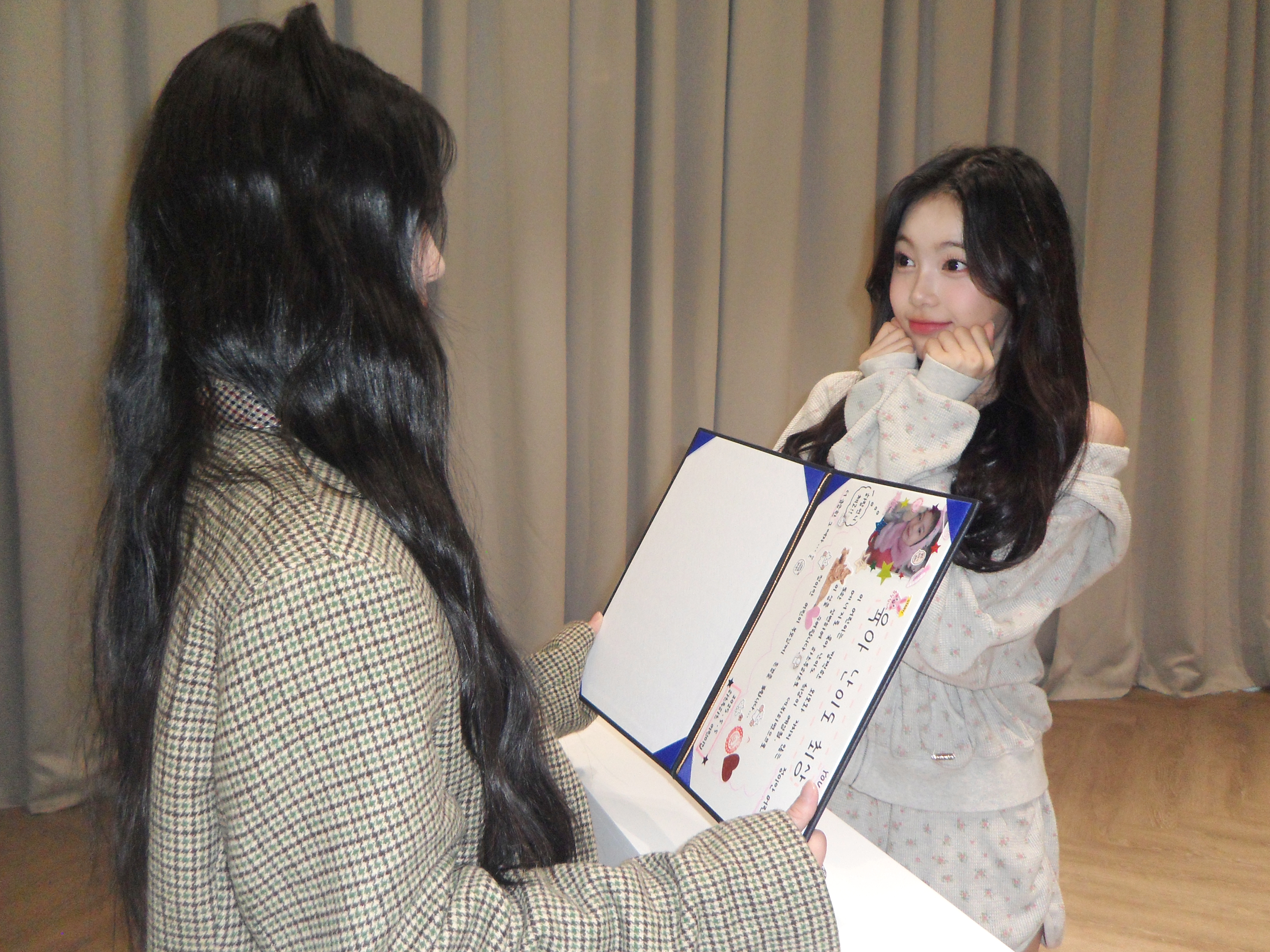 지우가 직접 카르멘에게 상장을 전달했어요~