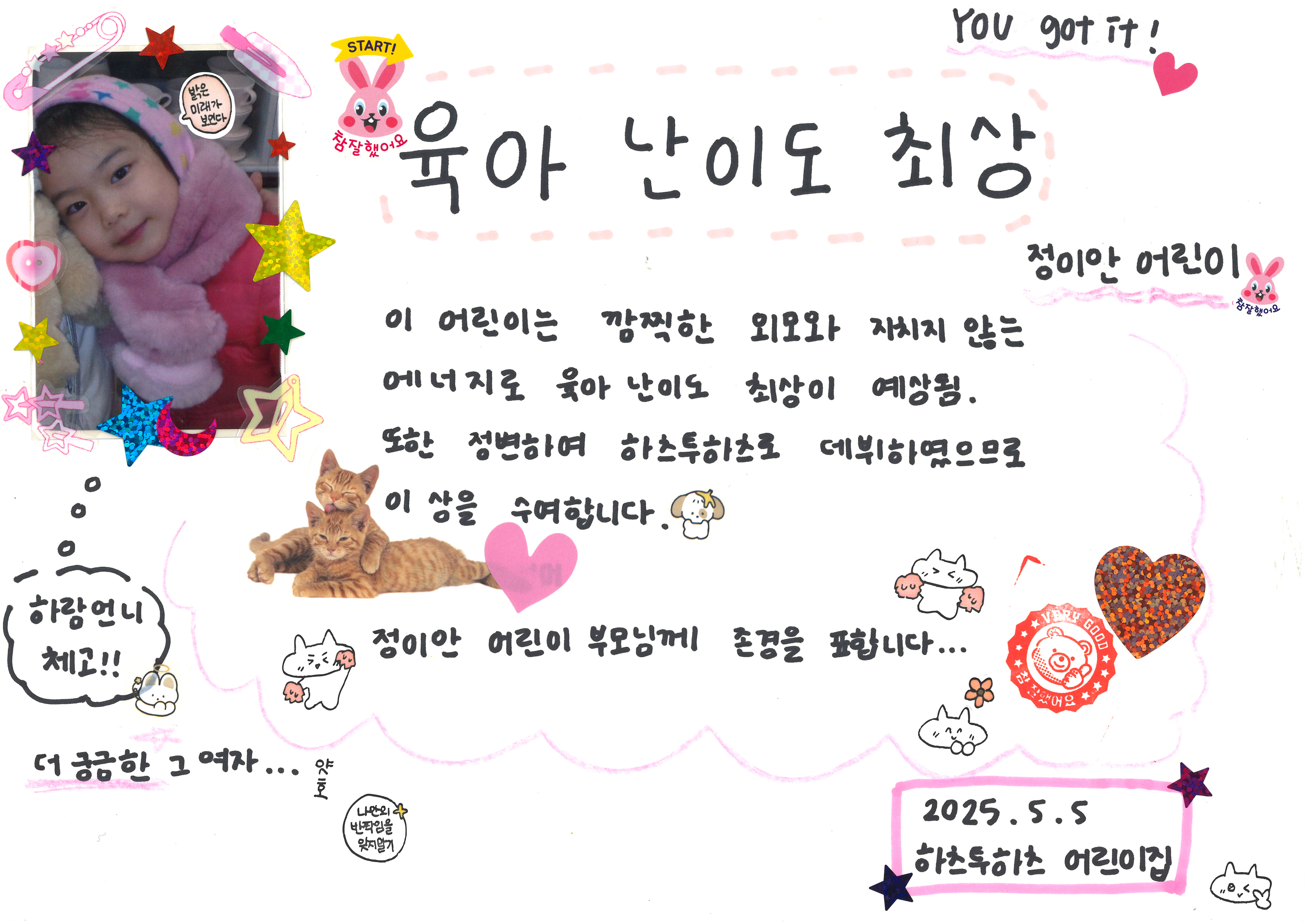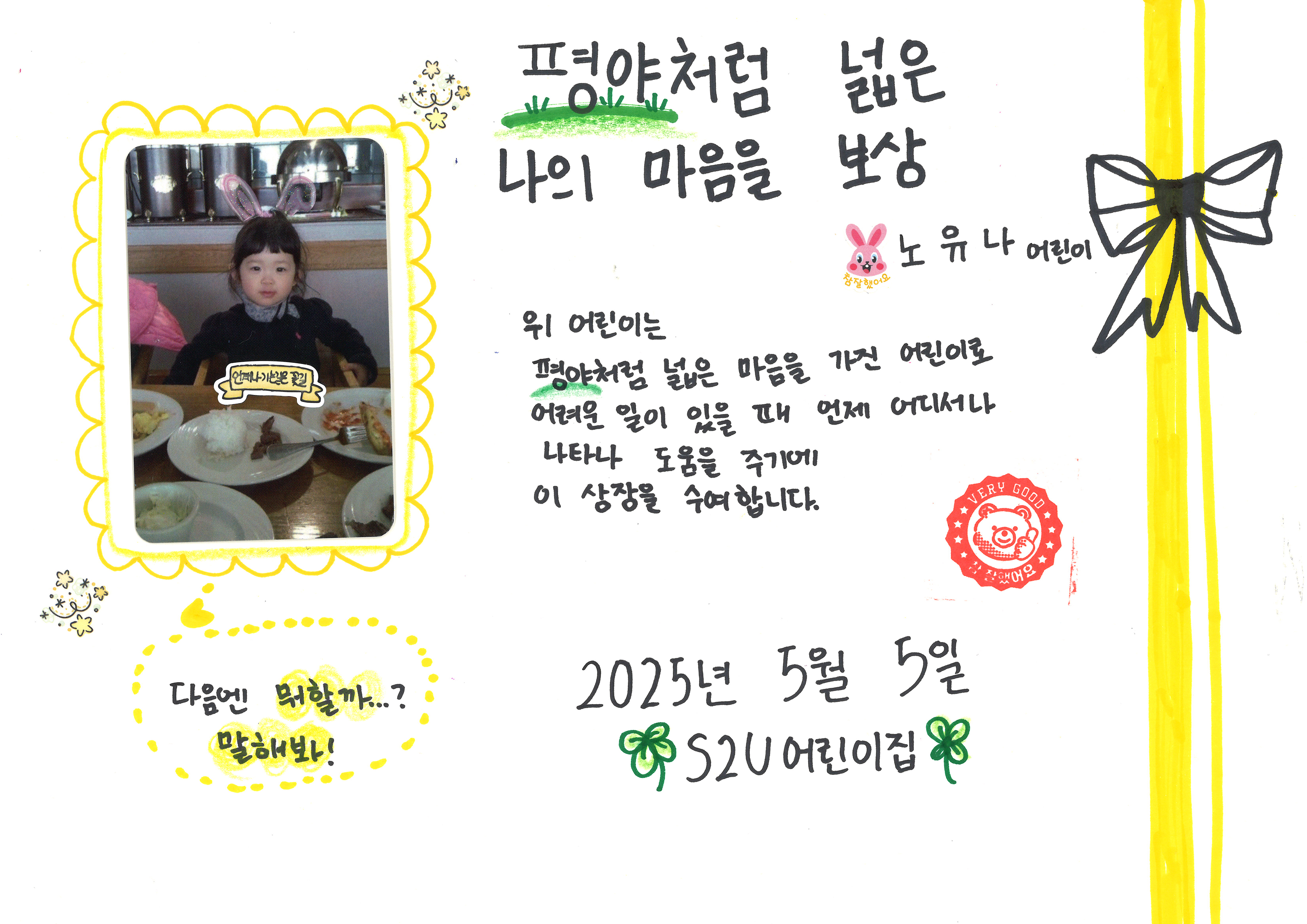 저희 하츄S2U어린이집에서도 어린이날을 맞아
